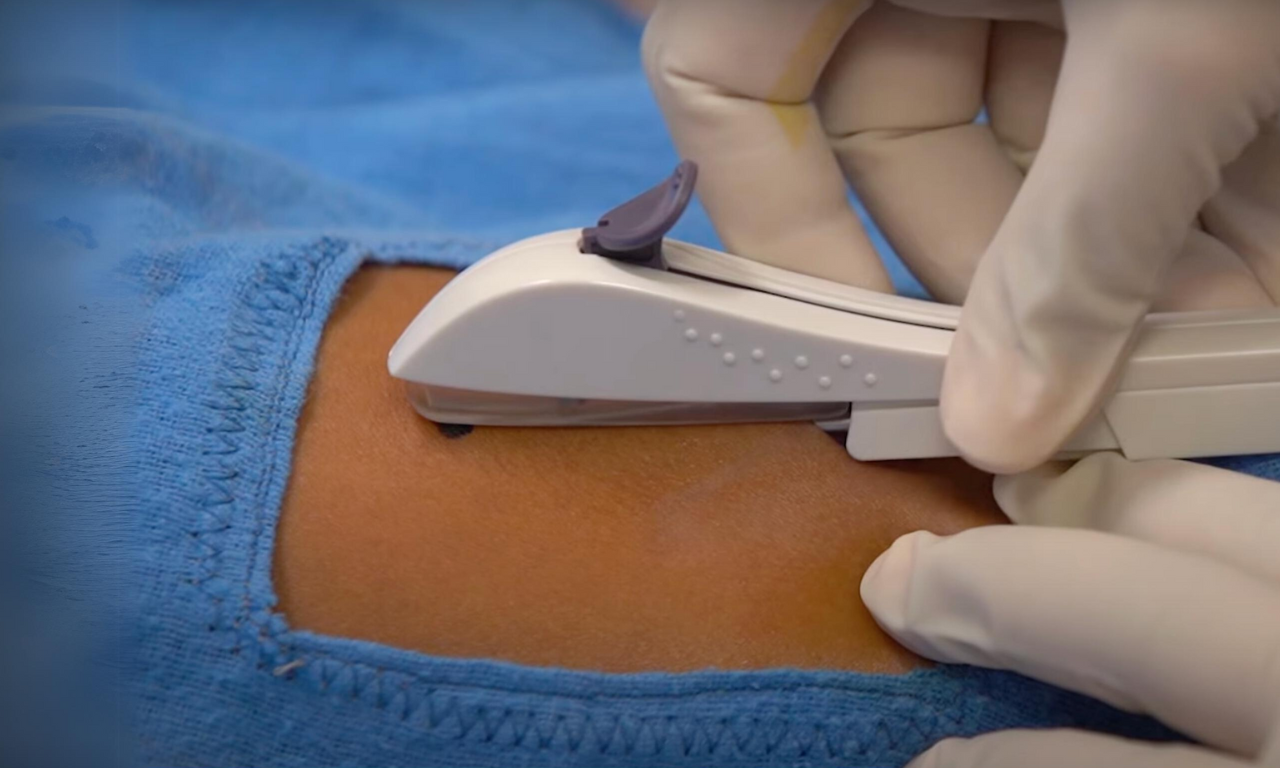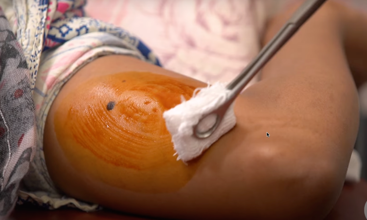 Doktor akan menggunakan cecair antiseptik untuk mencuci kawasan sekitar tapak Implanon.