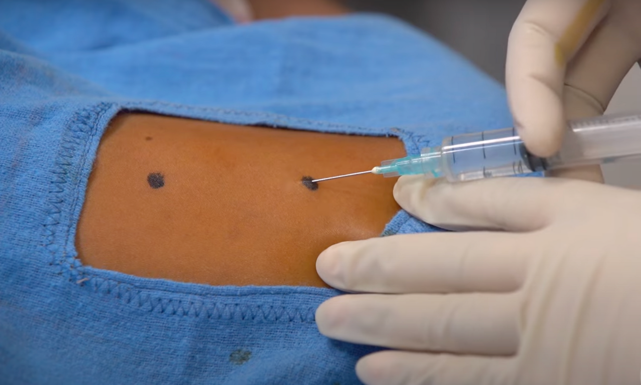 Ubat tahan sakit setempat seperti lignocaine akan disuntik supaya prosedur dapat dijalan dengan selesa dan tidak sakit.